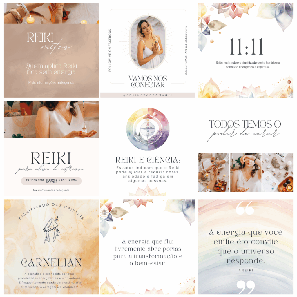 ✨ Ideal para terapeutas holísticas que desejam atrair, educar e se conectar com seu público, transmitindo confiança, equilíbrio e propósito nas redes sociais.